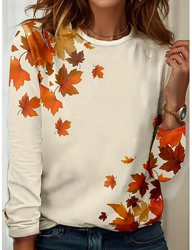 Жен. Футболка Графика Растения Винтаж Стиль Классика Длинный рукав Вырез под горло Круглый вырез Обычные топы Повседневные С принтом Черный Синий Оранжевый Темно-серый Серый Весна Осень Зима