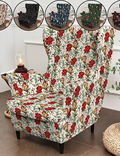 Рождественский чехол на кресло с подлокотниками, полиэстеровый чехол с цветочным / полосатым / геометрическим рисунком, праздничный декоративный чехол для стула для дома