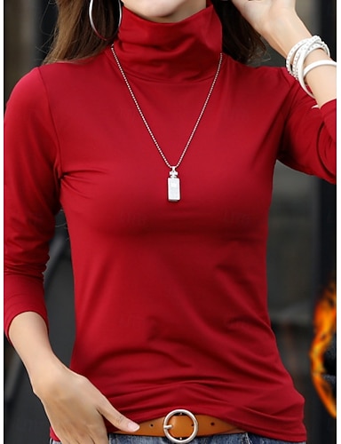 Жен. Блуза Сплошной цвет Стиль На каждый день Длинный рукав Хомут Обычные топы Повседневные Рюши Черный Белый Винный Коричневый Зеленый Весна Осень Зима