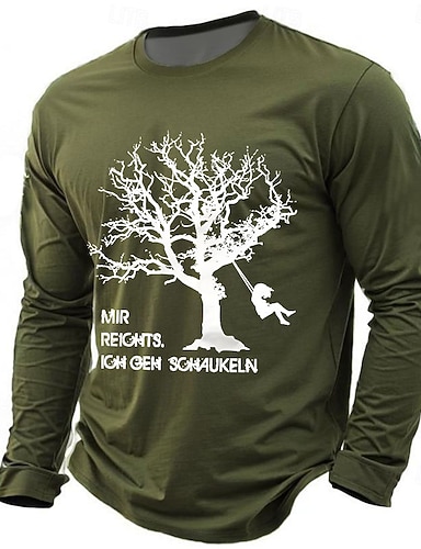 Муж. Забавный сленг Немецкий Футболка Длинный рукав Футболка 3D печать Вырез под горло Рубашка Мода Повседневные Классический Для улицы Повседневные Черный Синий Зеленый Лето Весна Одежда S M L XL