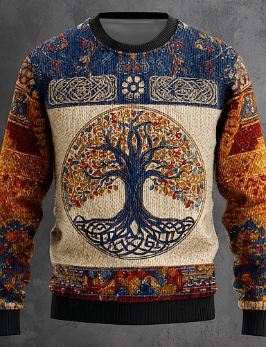 Муж. Викинг Дерево жизни Пуловер Свитер Вязаная одежда "Круглый вырез ""под горло""" Ретро На каждый день Отпуск Повседневные 3D печать Вязанная Сохраняет тепло Длинный рукав Весна Осень Зима