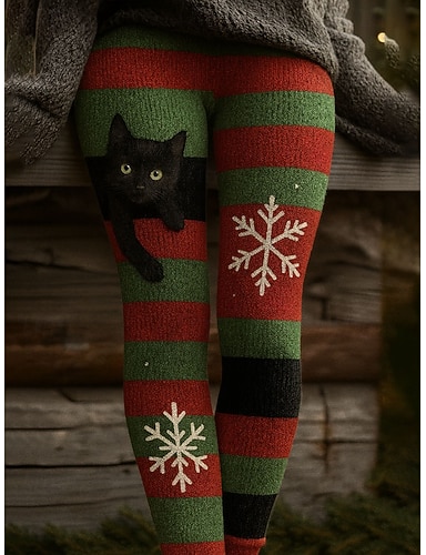 Жен. Леггинсы Отпуск Винтаж Этнический стиль Полная длина ЗавышеннаяPantsНовогодняя тематика Графика В клетку Кот 3D печать Быстровысыхающий Воздухопроницаемость Мягкий Эластичная