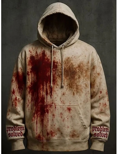Halloween Муж. Брызги крови Буквы Толстовка Мода Повседневные Капюшон Отпуск Для вечеринок Уличная одежда Бежевый Рисунок Осень Зима Дизайнер