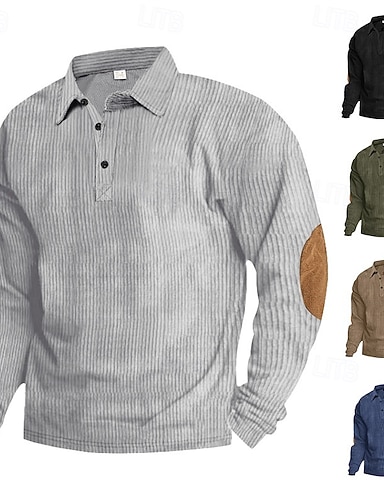 Муж. Толстовка Корд Толстовка с капюшоном и пуловером Натяни Толстовка на пуговицах Черный Военно-зеленный Темно синий Хаки Серый Лацкан Полотняное плетение Пэчворк