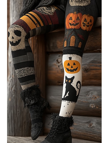 Жен. Леггинсы Отпуск Винтаж Этнический стиль По щиколотку ЗавышеннаяPantsHalloween Графика Черепа Кот 3D печать Быстровысыхающий Воздухопроницаемость Мягкий Эластичная