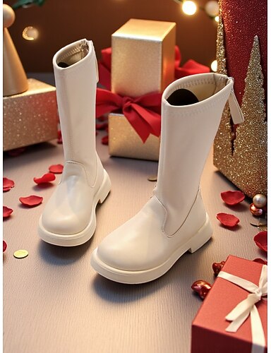 Туфли в стиле корейского поп-айдола, белые сапоги до середины голени из искусственной кожи для девочек с боковой молнией, удобная подошва, модная обувь для выступлений, для сцены, танцев и