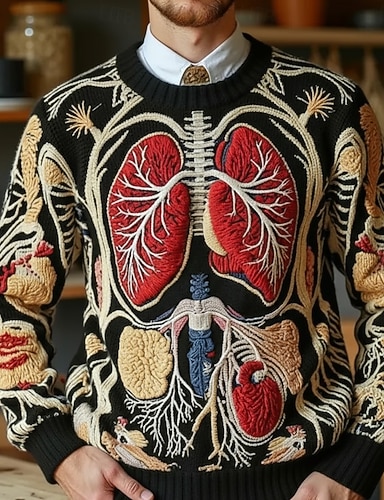 Halloween Муж. Внутренние органы Пуловер Свитер Вязаная одежда "Круглый вырез ""под горло""" На каждый день Темный Отпуск Для улицы Повседневные 3D печать Сохраняет тепло Длинный рукав Осень Зима
