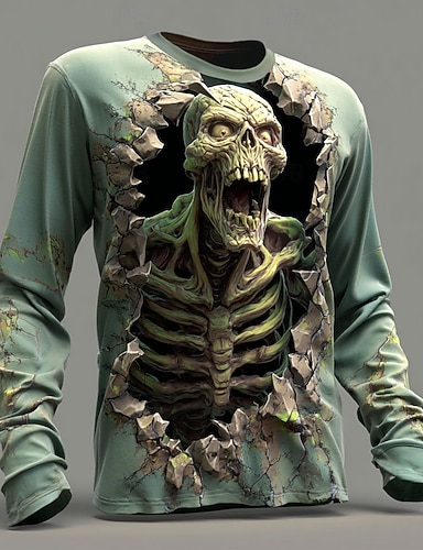 Halloween Муж. Зомби 3D Футболка Длинный рукав Футболка 3D печать Вырез под горло Рубашка Мода преувеличены Для улицы Повседневные Зеленый 1 # Зеленый 2# Розовый Лето Весна Осень Одежда S M L XL XXL