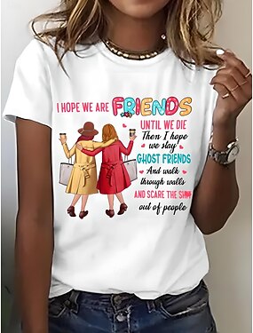 Жен. Футболка Графика Буквы Винтаж Стиль Классика С короткими рукавами Вырез под горло Круглый вырез Обычные топы Повседневные выходные С принтом Черный Белый Розовый Синий Лиловый Лето Весна friends