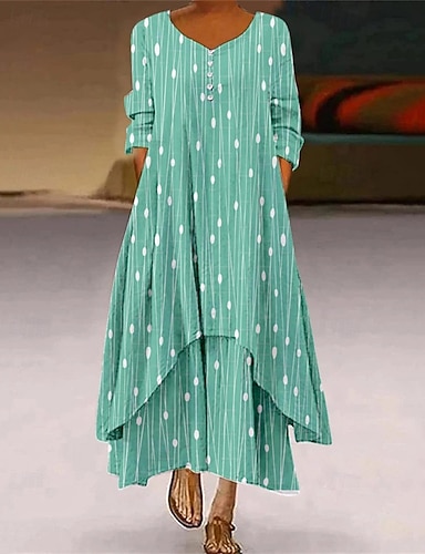 Жен. длинное платье платье макси Повседневное платье Летнее платье Мода Современное Повседневные Свидание выходные Стандартный Геометрический принт Рукав 3/4 Вырез под горло