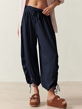 Жен. Брюки из хлопка и льна Брюки На каждый день По щиколотку Полотняное плетение Боковые карманы Воздухопроницаемость Удобный Неэластичная выходные Черный Винный Зеленый Хаки Весна лето Стандартный