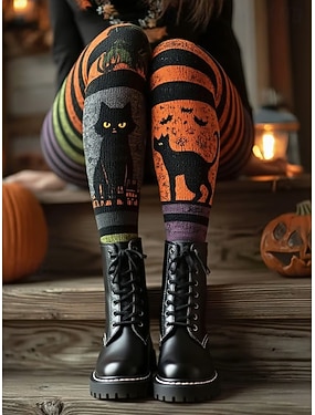 Жен. Леггинсы Отпуск Винтаж Мода Полная длина ЗавышеннаяPantsHalloween Графика Черепа Кот Рисунок Мягкий Дышащий Эластичная на открытом воздухе Отпуск Для улицы Каштановый Оранжевый Серый