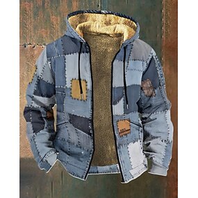 Муж. Графика В клетку Толстовка Жакет Мода Уличный стиль Капюшон на открытом воздухе Для спорта и активного отдыха На выход Синий Темно-синий Карман С принтом Флис Зима Дизайнер