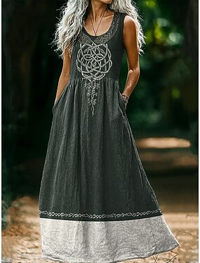 Жен. Длинное платье Сарафан Платье A-силуэта Платье-комбинация Плиссированное платье Отпуск На каждый день Богемный Повседневные Праздники Пляж Свободное облегание Графика Без рукавов U-образный вырез