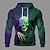 Halloween Муж. Черепа Толстовка Мода Повседневные Капюшон Отпуск Для вечеринок Уличная одежда Темно-зеленый Кулиска Карман Рисунок Осень Зима Дизайнер