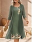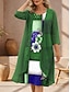 Жен. Платье Комплект Платье A-силуэта На каждый день Полуформальные платья Цветочный принт Графика С принтом Платье средней длины Рукав до локтя Вырез под горло Отпуск Свидание Синий Белый Зеленый
