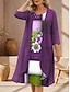 Жен. Платье Комплект Платье A-силуэта Отпуск На каждый день Цветочный принт Графика Многослойный С принтом Длинное платье Рукав 3/4 V-образный вырез Повседневные Пляж Лиловый Зеленый Цвет хаки