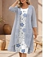 Жен. Платье Комплект Платье прямого кроя Летнее платье Элегантный стиль Цветочный принт Графика Многослойный С принтом Платье средней длины Рукав 3/4 Вырез под горло Повседневные Отпуск