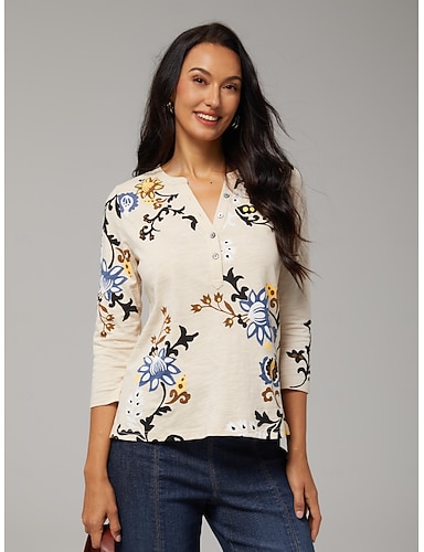 футболка из цельнохлопкового эластичного материала с цветочным принтом для отпуска