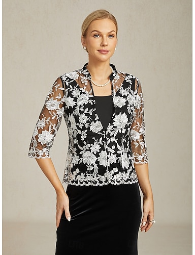 Из двух частей А-силуэт Платье для матери невесты Элегантный стиль Круглый вырез Ниже колена Кружева Рукав 3/4 с Вышивка Один цвет