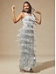 Женское рождественское платье макси с пайетками, платье-футляр с бахромой и кисточками, элегантное, однотонное, без рукавов, с V-образным вырезом, серебристое, весна-осень-зима