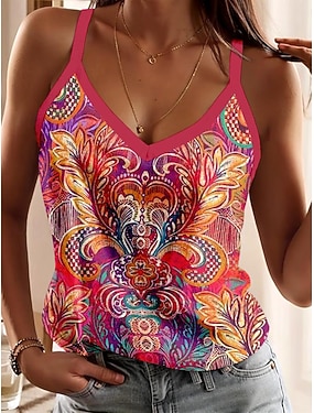 Жен. Майка-топ без бретелек Цветочный принт Графика Винтаж Стиль Этнический Без рукавов Без рукавов V-образный вырез Обычные топы Повседневные С принтом Черный Розовый Светло-лиловый Лиловый Оранжевый