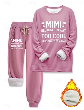 Женский комплект пижам с флисовой подкладкой 2 предмета свитшот спортивные костюмы теплый комфорт мягкий пуловер с длинным рукавом длинные брюки круглый вырез текст эластичный пояс домашний