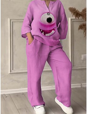 Жен. Активный Мода Комплекты брюк Рукав 3/4 Вырез под горло 3D печать С принтом Отпуск Повседневные Праздники Розовый Лиловый Лето Стандартный