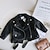 Дети Девочки Черная кожаная куртка Жакет Сплошной цвет Мода Молния Карман на открытом воздухе Пальто Верхняя одежда 4-12 лет Осень Черный
