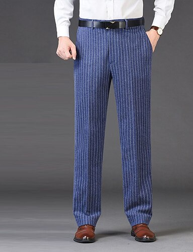 Муж. Костюм Штаны Повседневные брюки Брюки без защипов Карман В клетку Полоса Комфорт Теплый Свадьба Бизнес Повседневные Ретро Классика Donkerkaki Тёмно-синий Завышенная Эластичная