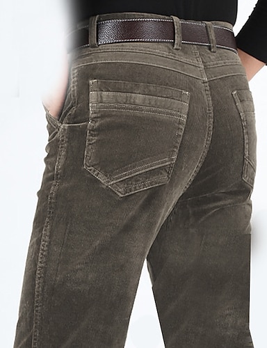 Муж. Костюм Вельветовые брюки Зимние штаны Штаны Карман Полотняное плетение Теплый Дышащий Полная длина Свадьба Бизнес Повседневные На каждый день Штаны Черный Коричневый Слабоэластичная