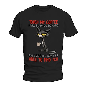Мужская забавная футболка с кофе Кислый кот - Не трогай мой кофе Юмор графическая футболка
