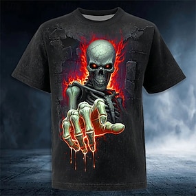 Halloween Муж. 3D-печати Адское пламя 3D Скелет Футболка С короткими рукавами Футболка 3D печать Вырез под горло Рубашка преувеличены Оригинальный рисунок Ужас Для вечеринок Для улицы Праздники