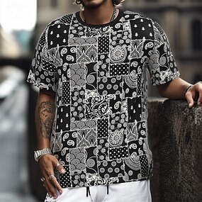 Муж. Огурцы Футболка С короткими рукавами Футболка 3D печать Вырез под горло Рубашка Мода Этнический Для улицы Повседневные Черный Лето Весна Одежда S M L XL XXL XXXL