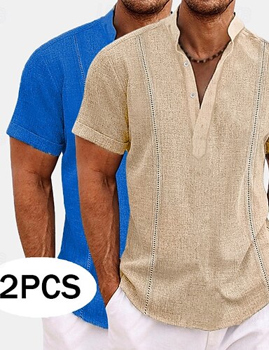 Муж. Рубашка льняная рубашка Рубашка с воротником-стойкой Поповер Рубашка Летняя рубашка Пляжная рубашка Полотняное плетение Отпуск Кьюриз Черный Белый Розовый Зеленый С короткими рукавами Хенли Лето