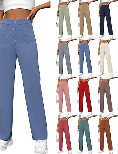 Жен. Костюм Уличный стиль Стиль Полная длина Средняя талия Полотняное плетение Карман Эластичная талия Удобный Официальные на открытом воздухе Офис Темно-Серый Черный Цвет фуксии Цвет хаки Осень