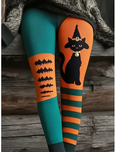 Жен. Брюки Леггинсы Уютные леггинсы Уличный стиль На каждый день Полная длина ЗавышеннаяPantsHalloween Кот Эластичная талия С принтом Воздухопроницаемость Удобный Эластичная