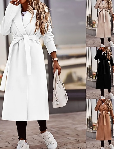 Жен. Повседневная куртка Сохраняет тепло Удобный Пуговицы Мода На открытом воздухе Полотняное плетение На выход выходные Однобортный крой Обычная Лацкан Стандартный Длинный рукав Верхняя одежда
