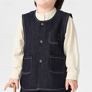 Дети Универсальные Жилет Пальто Верхняя одежда Сплошной цвет Без рукавов Карман Пуговицы Дышащий Пальто на открытом воздухе Хлопок Мода Повседневные Черный Осень Зима 4 года +