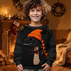 Новогодняя тематика Мальчики 3D Динозавр Толстовка Длинный рукав Весна Осень Мода Классический Дети 4-12 лет Вырез под горло на открытом воздухе Повседневные Стандартный