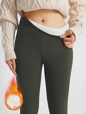 Жен. Брюки Леггинсы Уютная флисовая подкладка Уличный стиль На каждый день Полная длина Средняя талия Полотняное плетение Эластичная талия Удобный Для улицы Праздники На каждый день
