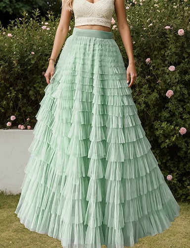 Жен. Туту Юбки из марли Симпатичные Стиль Прицесса Макси Завышенная Подол Однотонный Плиссировка Пэчворк Многослойный Слабоэластичная Для вечеринок Праздники