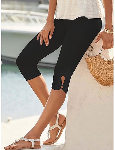 Женские леггинсы узкие сужающиеся брюки однотонные отпускные винтажные этнические брюки до колена высокой талией эластичные черные белые синие фиолетовые летние облегающие
