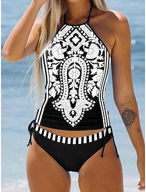 Женские купальники Танкини 2 предмета Чики Купальник Без спины Отпуск Пляжная Одежда Узоры Пейсли С Завязками Без рукавов Купальники