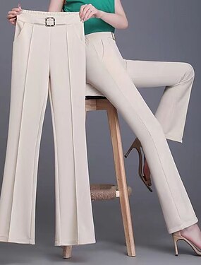 Жен. Костюм Широкие Брюки Мода Уличный стиль Полная длина Завышенная Полотняное плетение Эластичная талия Воздухопроницаемость Удобный Слабоэластичная Бизнес На каждый день
