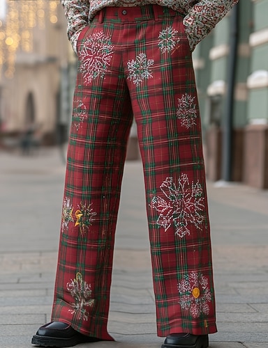 Новогодняя тематика Муж. Сетка / плед узоры В снежинку Штаны Костюм Костюм Брюки Нормальная Мода Повседневная на открытом воздухе Праздники Свободные брюки без застежки спереди с боковыми карманами