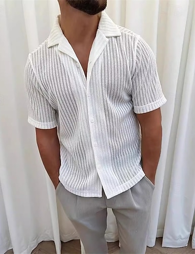 Муж. Вафельная рубашка Летняя рубашка Повседневная рубашка Вафельная вязаная рубашка Белый Светло-зеленый Розовый Темно-серый Абрикосовый Длинный рукав Текстура Мода Отложной Отпуск Праздники Одежда