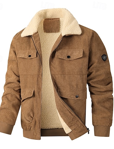 Муж. Вельветовый пиджак Флисовая жилетка Официальные Дом Сохраняет тепло Карман Воротник из флиса Осень Зима Сплошной цвет Активный Нейтральный Обычная Черный Коричневый Серый Жакеты
