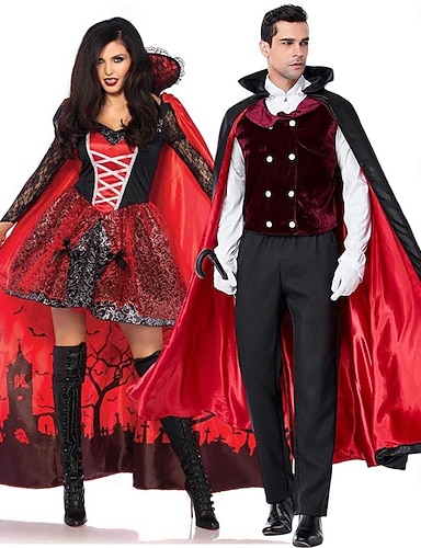 Вампиры Дракула День всех святых Необычные костюмы Групповые костюмы для пар на Хэллоуин Женщины в черном Ужас Страшный костюм Взрослые Для пары Муж. Жен. Хэллоуин Карнавал