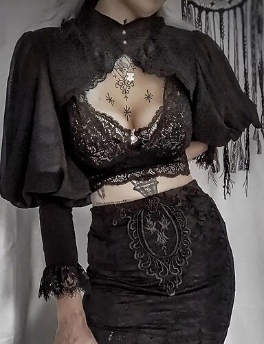 Готика Викторианский стиль Топ с пожатием плеч ведьма Кружева Маскарадный костюм Жен. Хэллоуин Карнавал Выступление Для вечеринок Взрослые Кофты